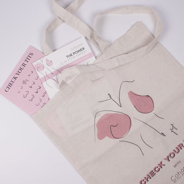 MORE INFORMATIONIm Oktober 2021 kuratierte Cohorted eine Think Pink-Tasche mit dem Motto "Überprüfe deine Titten" zur Unterstützung des Breast Cancer Awareness Month. Wir haben mit J.Leighdraws zusammengearbeitet, um diese umwerfend nachhaltige Tasche zu entwerfen, deren Erlös zu 60 % direkt an Breast Cancer Now geht. Breast Cancer Now ist eine Wohltätigkeitsorganisation, die sich für die bestmögliche Information und Unterstützung von Menschen einsetzt, die von Brustkrebs betroffen sind.